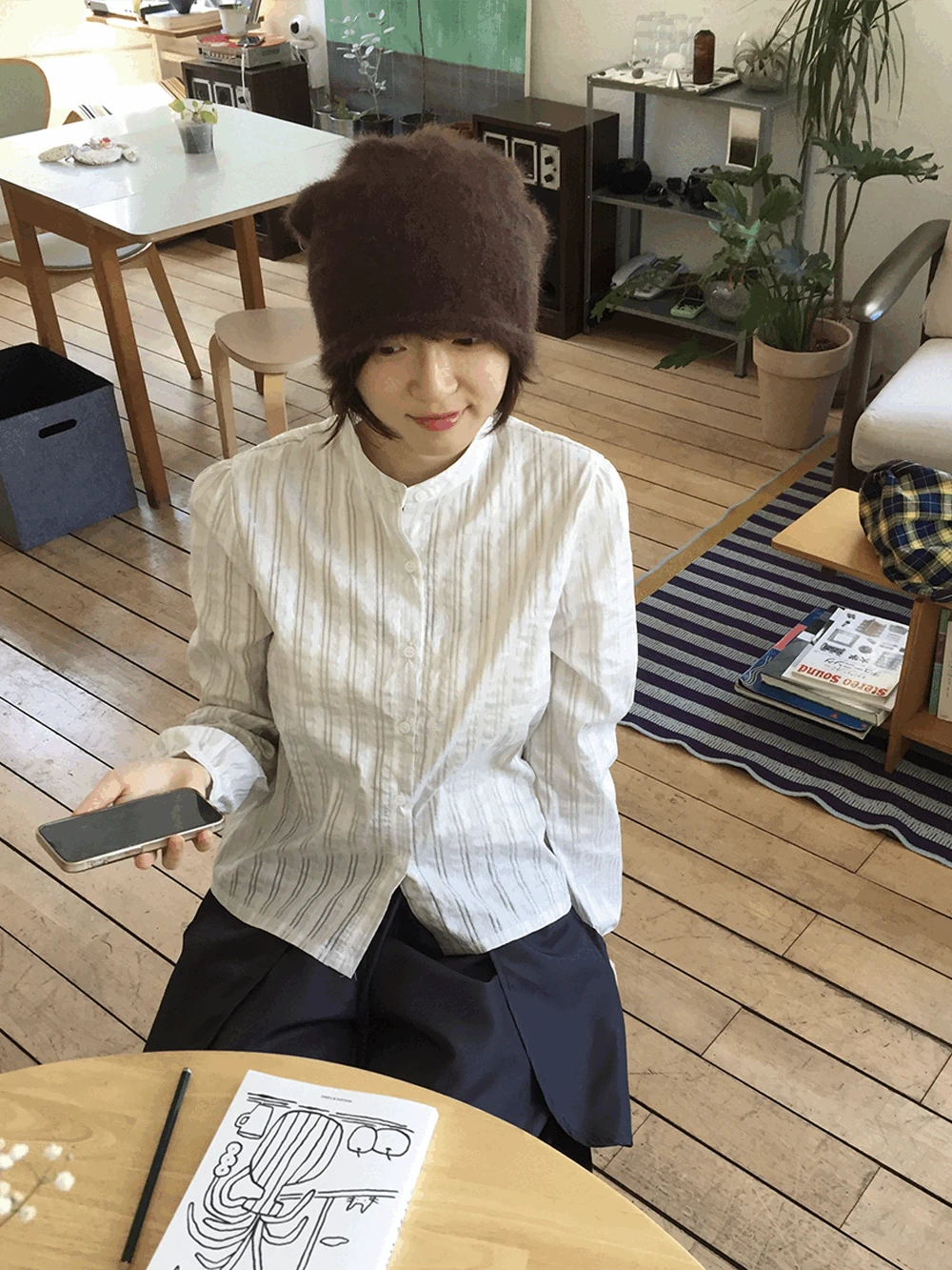 하우유의 누아 스트라이프 헨리넥 셔츠 (2c) 상품입니다. 현재 가격은 54,500원입니다.