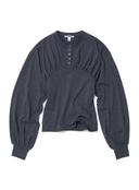 파르티멘토의 [WOMEN] SHIRRING HENLEY NECK LONG SLEEVE TEE_CHARCOAL MELANGE 상품입니다. 현재 30% 할인 중으로, 33,600원에 구매 가능합니다.