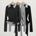 [44~66반/3컬러] 카라 타이업 레이어드 긴팔티 긴팔티셔츠 티셔츠 카라니트 하객룩 레이어드룩 레이어드