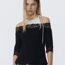 낫노잉의 Lace Off Shoulder Layered Top (BLACK) 상품입니다. 현재 80% 할인 중으로, 14,400원에 구매 가능합니다.