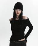 큐리티의 C ASYMMETRIC OFF-SHOULDER KNIT TOP_BLACK 상품입니다. 현재 가격은 79,000원입니다.