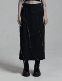 파도 데미지 데님 롱스커트 _ Black