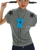 OINIMI 의 OINIMI star striped shoulder sleeve half turtleneck t-shirt 별 스타 어깨 하프소매 터틀넥 티셔츠 상품입니다. 현재 가격은 40,000원입니다.