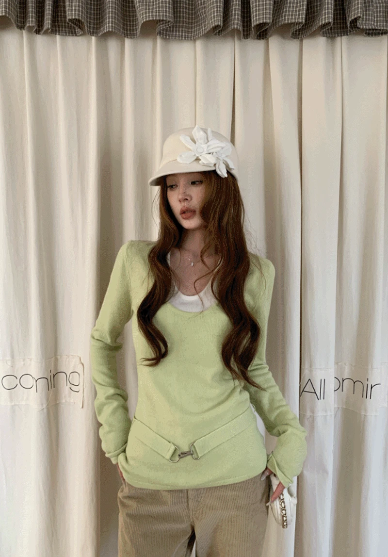 리마인드 의 투톤 레이어 버클 니트(5572) 상품입니다. 현재 가격은 52,000원입니다.