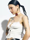 에즈이프캘리의 FLOWER RUFFLE SLEEVELESS BLOUSE WHITE 상품입니다. 현재 15% 할인 중으로, 83,300원에 구매 가능합니다.