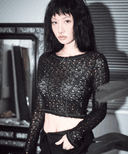 슬림 스티치 크롭 니트 [블랙]