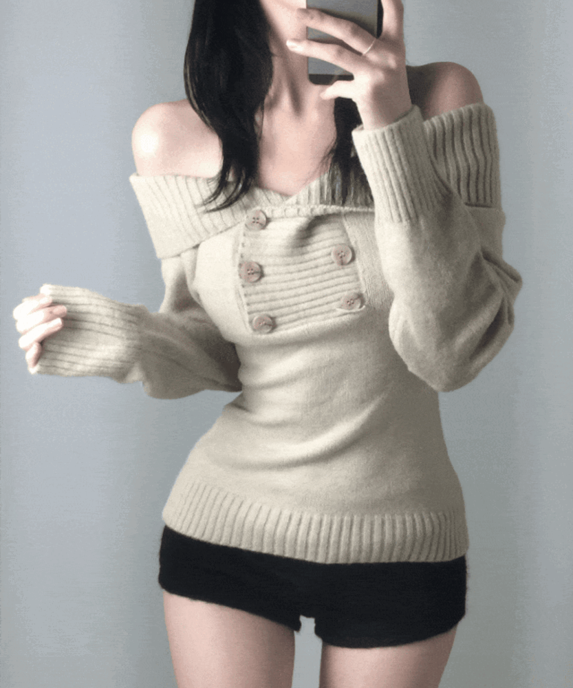 하루의 [개미허리핏/-3kg] 하루 잘록 오프숄더 버튼 니트 3color 상품입니다. 현재 12% 할인 중으로, 28,160원에 구매 가능합니다.