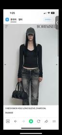 보헤미안서울의 보헴서 브이넥 백 홀 티셔츠 차콜 | 후루츠패밀리 상품입니다. 현재 가격은 48,000원입니다.