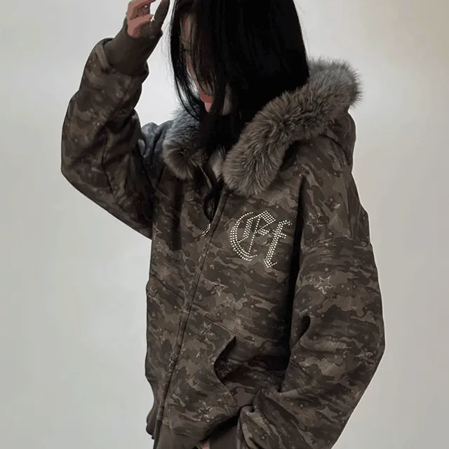 이스케이프프롬의 빈티지 스타 데미지 카모 풀프린트 투웨이 퍼 후드집업[2color] 상품입니다. 현재 가격은 128,000원입니다.