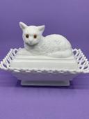 라일라스앤틱의 스페셜티 글래스 회사 밀크 글래스 고양이 레이스 바스켓-귀한 Specialty Glass Co. Milk Glass Cat on Lace Basket circa 1890 상품입니다. 현재 가격은 129,000원입니다.
