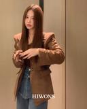 하이원스의 [HWS] 여성 로엘 슬림핏 3버튼 스웨이드 자켓 상품입니다. 현재 가격은 96,000원입니다.