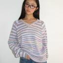 론론의 SOFT STRIPE V NECK KNIT PURPLE 상품입니다. 현재 20% 할인 중으로, 88,000원에 구매 가능합니다.