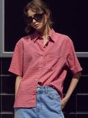 반원 아틀리에의 A3480 시스루 체크 반팔 셔츠_Pink 상품입니다. 현재 24% 할인 중으로, 51,255원에 구매 가능합니다.