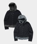 체크 프릴 레이어드 후드 스트링 롱 슬리브 가디건_2COLOR