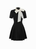 Stand Collar Bowknot Flared Mini Dress