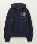 엔젤 크로스 스티치 기모 후드 티셔츠 네이비