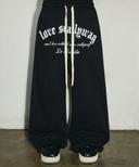 크롬 레터링 메가 커브드핏 스웨트 팬츠[블랙]