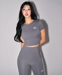 W QUICK DRY EMBLEM SEMI CROP T-SHIRTS [CHARCOAL]