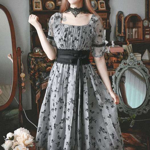 참견의 메리엘 플라워 체크 허리 배색 롱 원피스 op0357 상품입니다. 현재 70% 할인 중으로, 20,970원에 구매 가능합니다.