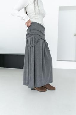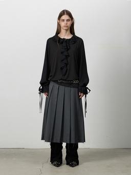 • 제너럴아이디어 WOMAN 페이크 레더 핀턱 롱스커트 [MUD]