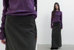 • 네이비 카운티 Fringe Flared Denim Skirt (Dark Grey)