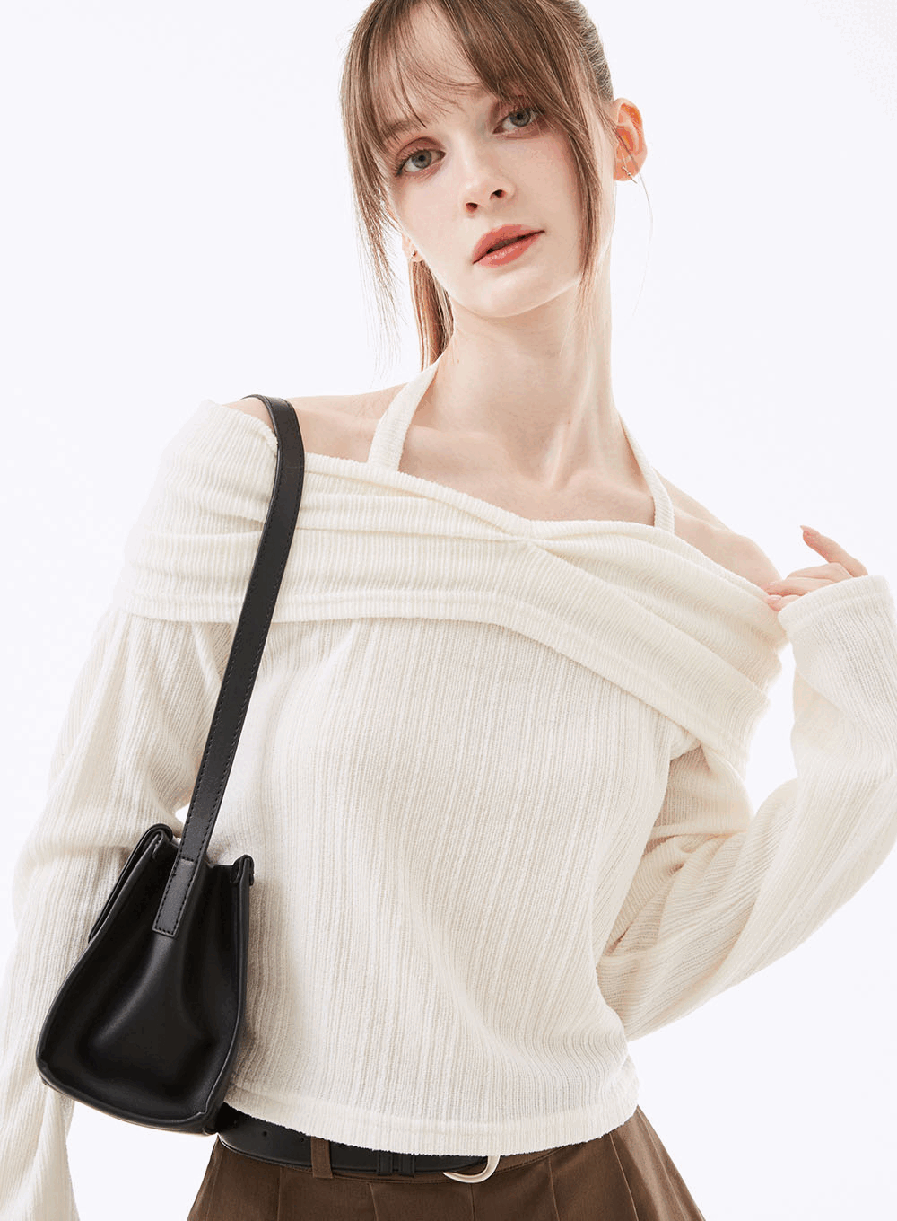 • 그레이레이즈 [어깨트임💘/버튼포인트] 울언발오프숄더루즈니트티 (3color)