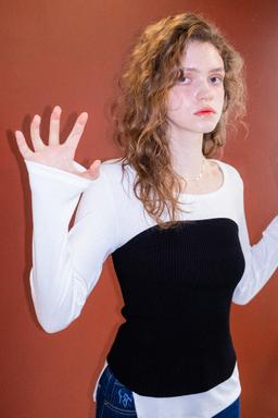 상세 보기미치코런던코시노 SOFT WOOL LAYERED TOP CHOCOLATE BROWN