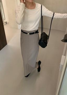 상세 보기이너프 ENOUGH [블랙SM 차콜SM 베이지M 당일배송] 파운더스 파티나 스커트 울 H라인 트윌 일자 미디 치마 클래식 하객룩 이너프
