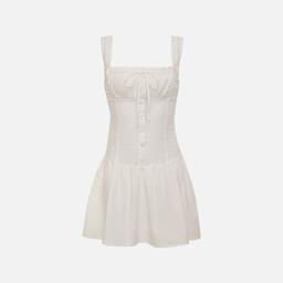 • 레트로 스테이지 White 1940s Solid Cotton Embroidered Lace Dress - White / S / 2