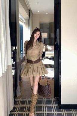 상세 보기에이홉 센크린 코듀로이 벨트 미니 원피스 ( 벨벳 벨로아 포켓 야상 긴팔 set 셔츠 )