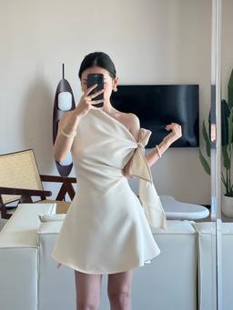 • 프레질 하트 Lace Pleated One Shoulder T-shirt FRA0379