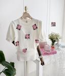 세렌디피티의 라운드 플라워 코사지 봄 여름 니트 반팔 티 상품입니다. 현재 21% 할인 중으로, 19,500원에 구매 가능합니다.