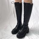타이디로즈의 (Tidy Rose)5.5cm 통굽 키높이 여성 레이스업 워커창 롱부츠 상품입니다. 현재 가격은 53,000원입니다.