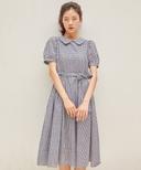 우주스튜디오의 라운드 카라 플레어 원피스 하프 슬리브 체크 블랙 상품입니다. 현재 가격은 145,000원입니다.