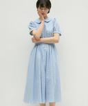 우주스튜디오의 라운드 카라 플레어 원피스 하프 슬리브 체크 블루 상품입니다. 현재 가격은 145,000원입니다.