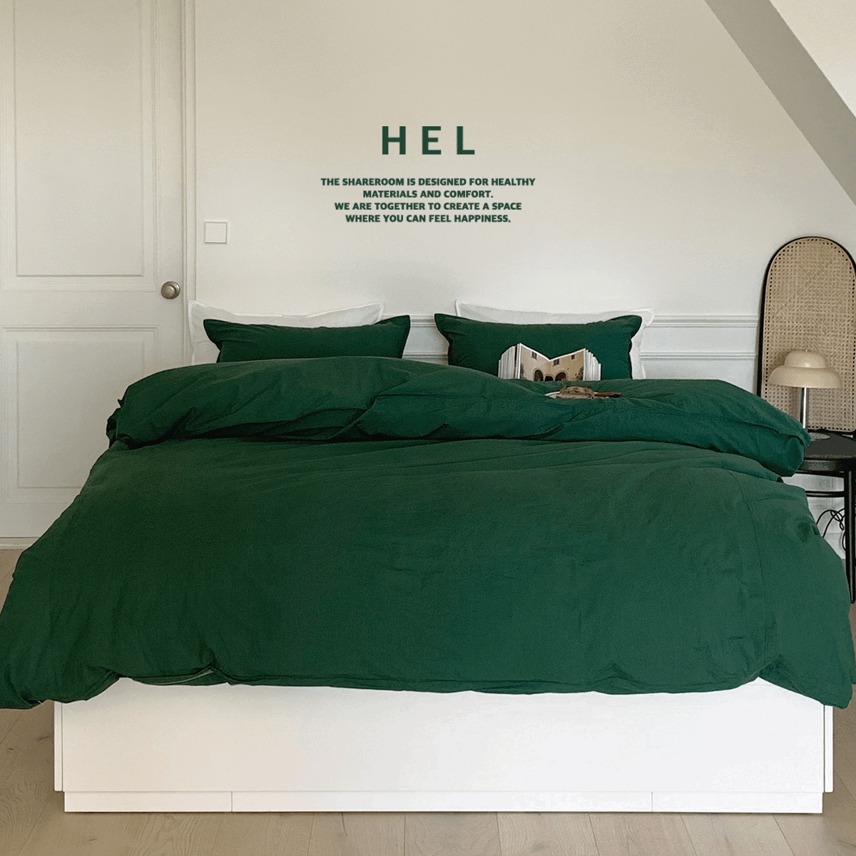 쉐어룸의 프렌치 60수 고밀도 바이오워싱 호텔침구 - 브리티쉬 그린 (SS/Q/K) 상품입니다. 현재 가격은 119,000원입니다.