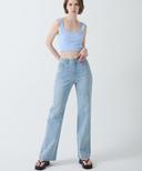 람의 RC001 V포켓 부츠컷 데님 팬츠(블루/아이스블루) 상품입니다. 현재 70% 할인 중으로, 33,600원에 구매 가능합니다.