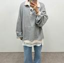 꽃콤마미의 반집업 배색 박시 맨투맨 상품입니다. 현재 가격은 34,000원입니다.