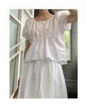 브런치의 [당일/무배] BR 브런치 리즈 반팔 셔링 레이스 블라우스 (Ivory) 당일발송 상품입니다. 현재 가격은 59,000원입니다.