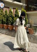 나인투룸의 모스 베이직 절개 셔링 어깨퍼프 A라인 롱 플레어 원피스 치마 상품입니다. 현재 가격은 30,000원입니다.