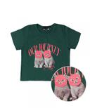 오언더알의 여성 배색 캣 크롭 티셔츠[그린] 상품입니다. 현재 가격은 53,000원입니다.
