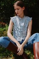 타브의 TAV SIGNATURE FRILL SLEEVELESS BLOUSE - LIGHT BLUE 상품입니다. 현재 가격은 178,000원입니다.