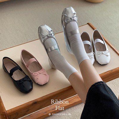 [무중력구름깔창] 미우 레더 말랑 리본 발레리나 토슈즈 플랫 #실버슈즈
