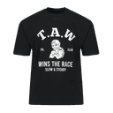 티에이더블유의 캐릭터 전면 그래픽 오버핏 반팔티(블랙) 상품입니다. 현재 60% 할인 중으로, 17,600원에 구매 가능합니다.