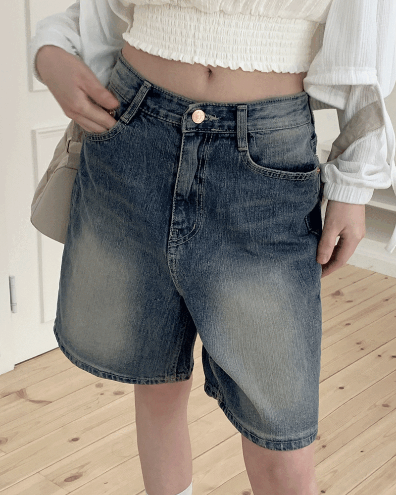 원더원더의 콤초 포인트 워싱 4부 데님 반바지 숏 팬츠 상품입니다. 현재 가격은 29,900원입니다.