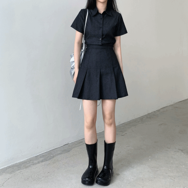 인더모어의 *당일*[단독가]러프 데님 플리츠 반팔 원피스_2color 상품입니다. 현재 가격은 19,800원입니다.