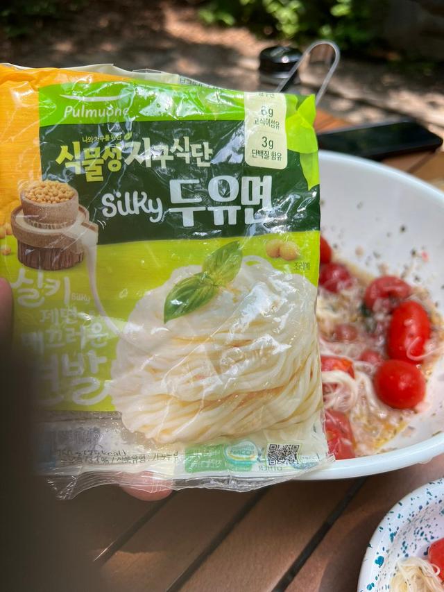 그리고 이 풀무원 두유면, 삶지 않고 바로 쓸 수 있는 면이라 캠핑에 쓰기 딱이었는데 진짜 면발 느낌이 두부면과 차원이 다르게 탱글한 소면과 비슷해서 놀람!! 여름 내내 쓸 것 같다 단백질도 3g 들어있음 대박 추천템