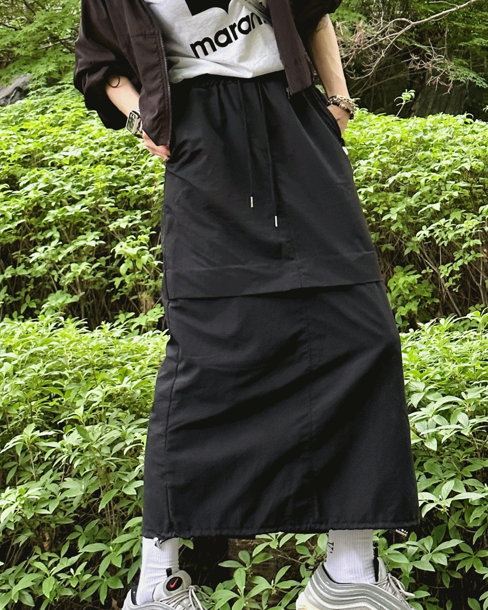 듀에스의 아톨 스트링 원턱 롱 스커트 (3 color) 상품입니다. 현재 가격은 36,000원입니다.