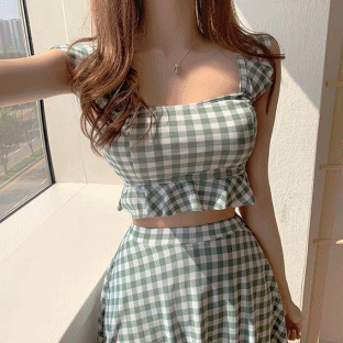 모모키니의 (당일출고) 핑크 블랙 카키초록 체크 날개 스커트 비키니 상품입니다. 현재 28% 할인 중으로, 18,900원에 구매 가능합니다.