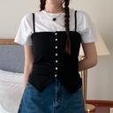 아더먼데이의 [화이트/블랙 당일발송] 밑단트임 버튼 끈나시 상품입니다. 현재 가격은 14,900원입니다.